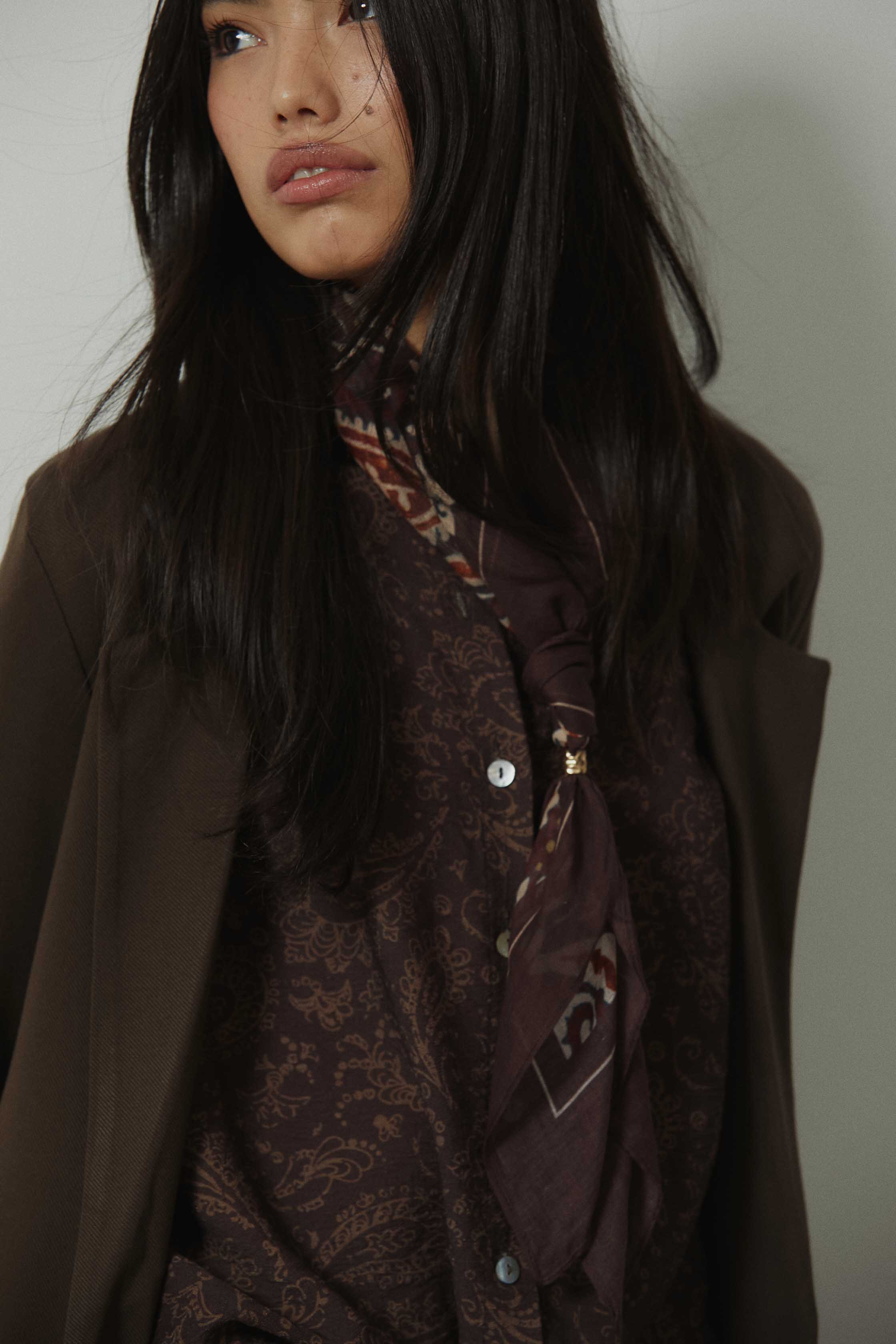 Americana sastre en color marrón con corte recto y silueta ligeramente entallada. Diseño de solapa clásica y manga larga que aporta estructura sin rigidez. Una prenda pensada para el entretiempo y el adelanto de primavera, fácil de integrar en looks de diario más cuidados.