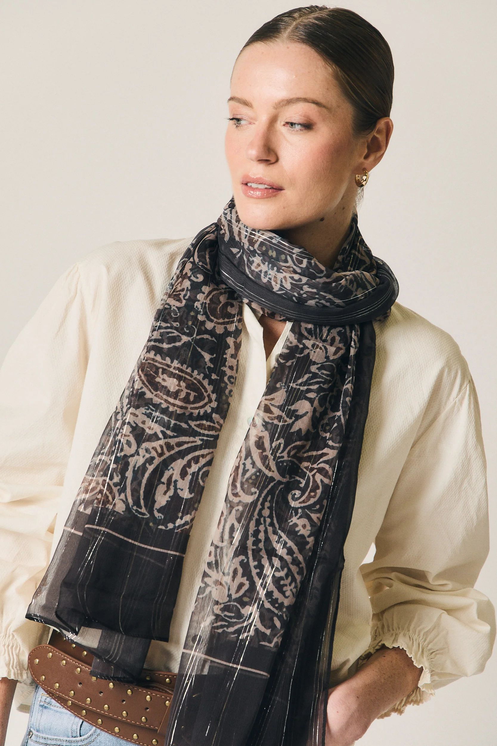 Un accesorio fácil de integrar en looks diarios y de entretiempo. Combina bien con prendas lisas en tonos neutros, jerseys finos, camisas blancas o abrigos sencillos. También funciona como toque final en estilismos más cuidados, aportando profundidad y contraste sin recargar.
