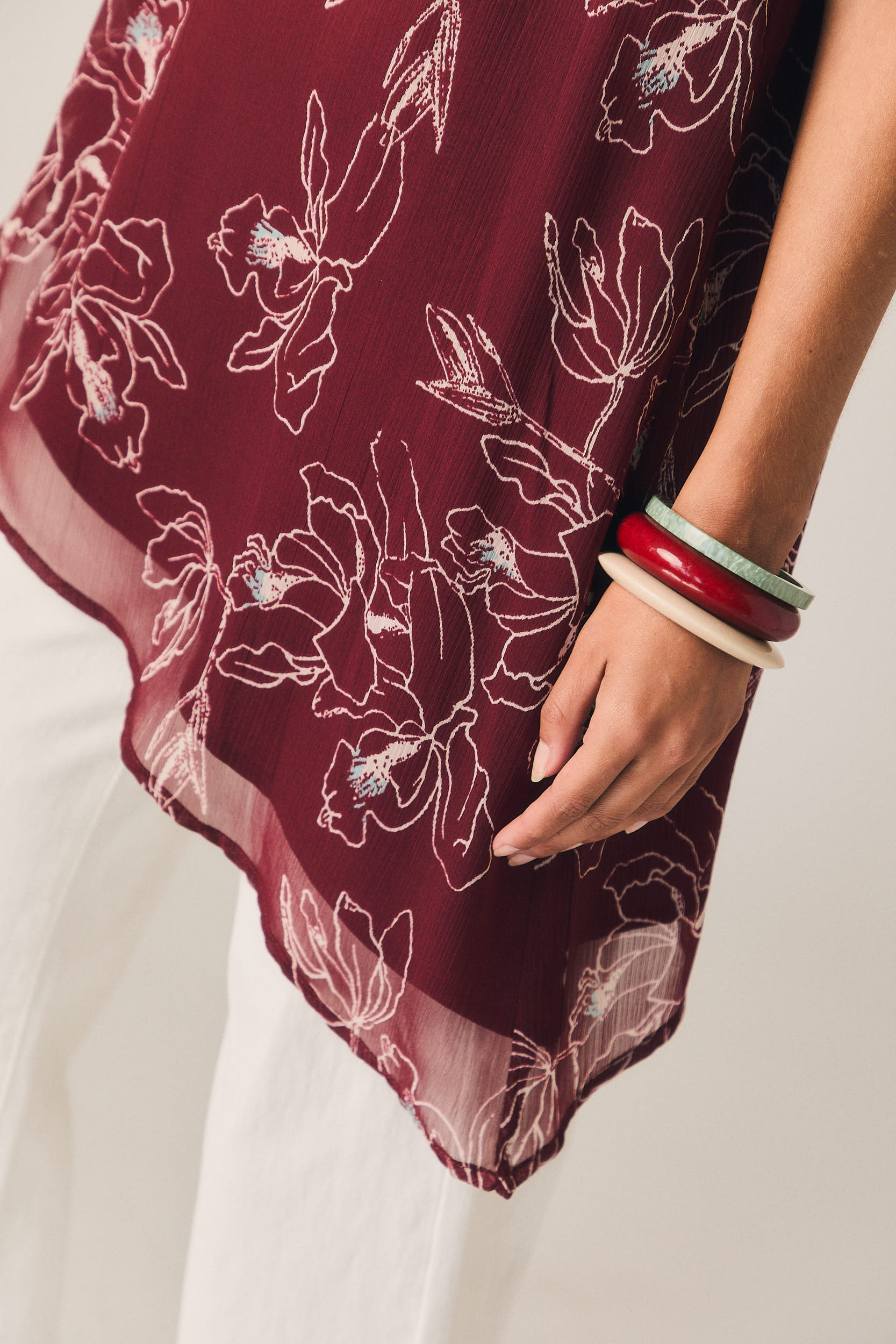 - Estampado floral en tono vino